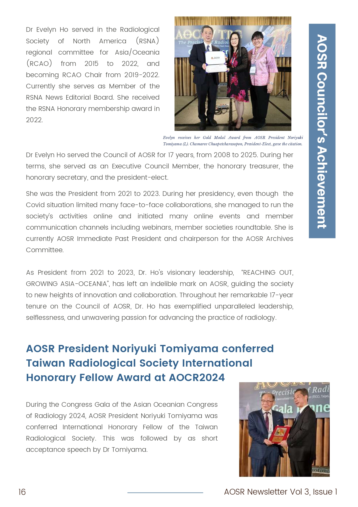 - AOSR Councillors’ Achievement: Dr. Evelyn Ho & Prof. Noriyuki Tomiyama