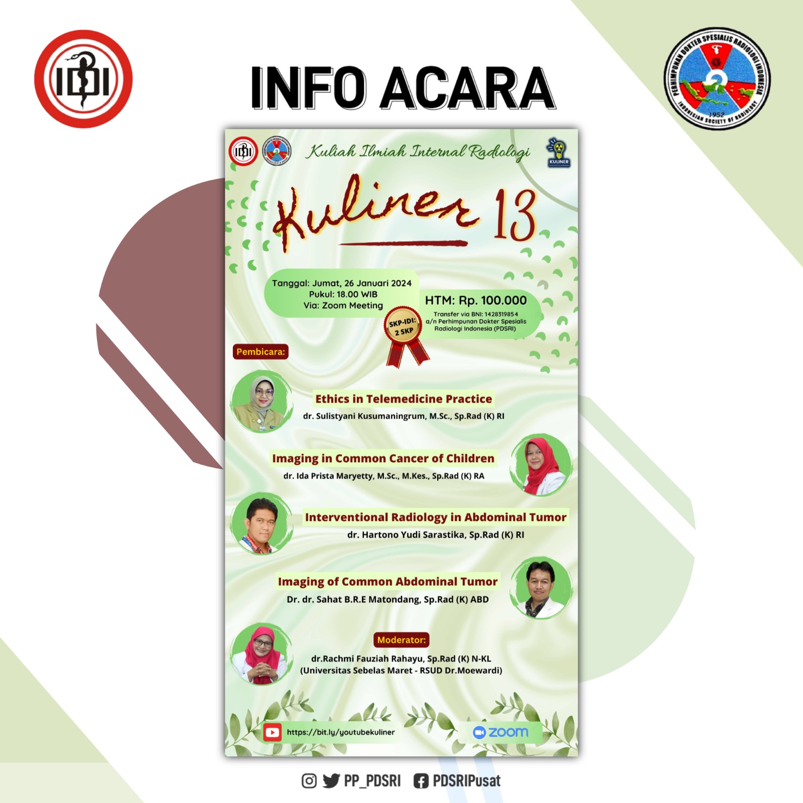 (Transfer via Bank BNI: 1428319854 a/n Perhimpunan Dokter Spesialis Radiologi Indonesia (PDSRI))