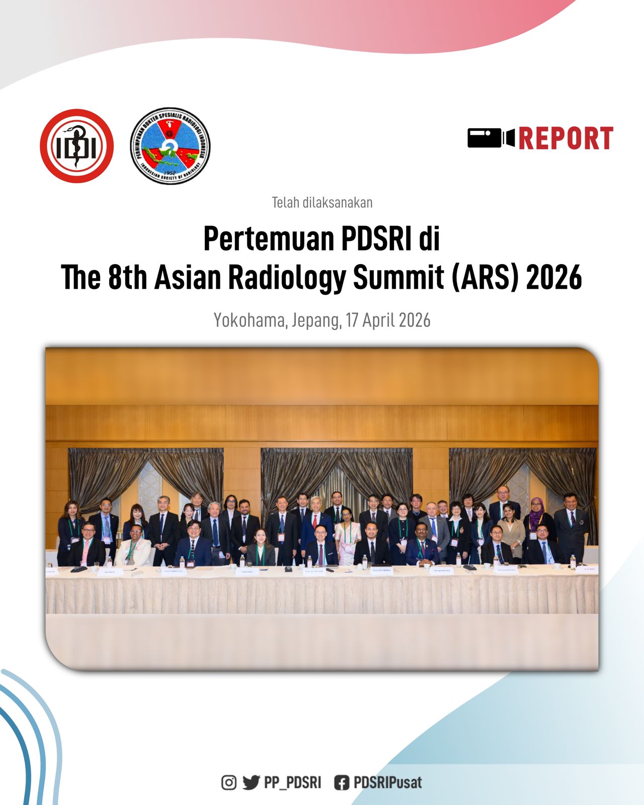 Perhimpunan Dokter Spesialis Radiologi Indonesia (PDSRI) turut berpartisipasi dalam The 8th Asian Radiology Summit (ARS) 2026 yang diselenggarakan sebagai bagian dari Japan Radiology Congress (JRC) 2026 pada Jumat, 17 April 2026, bertempat di Yokohama Bay Hotel Tokyu, Jepang.